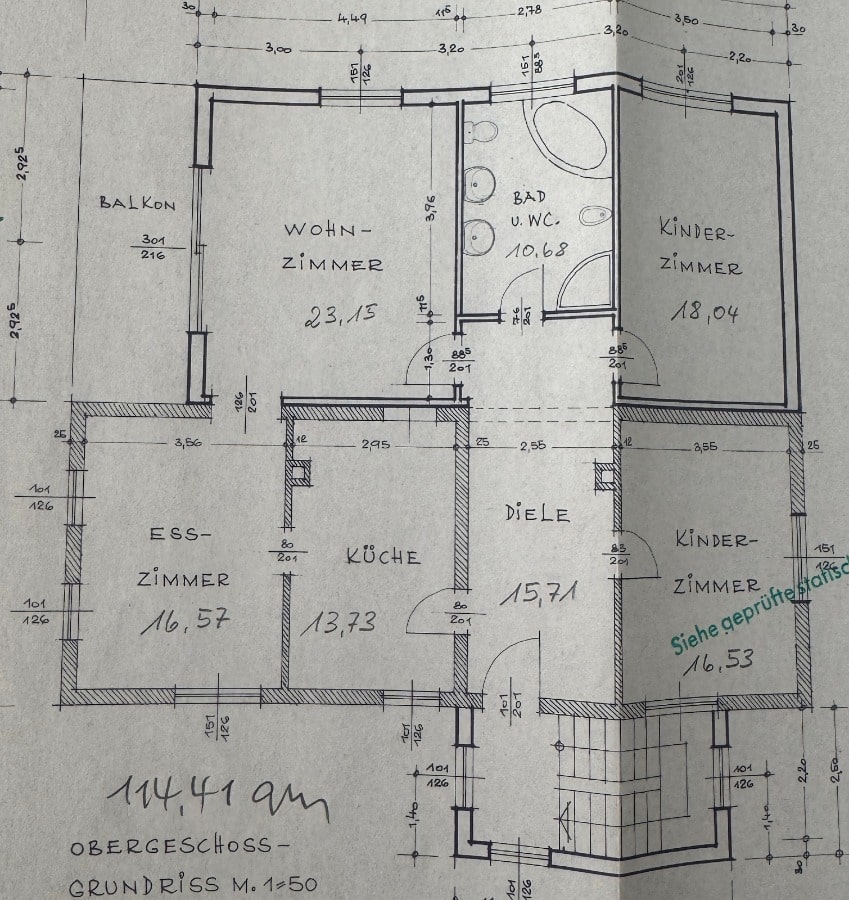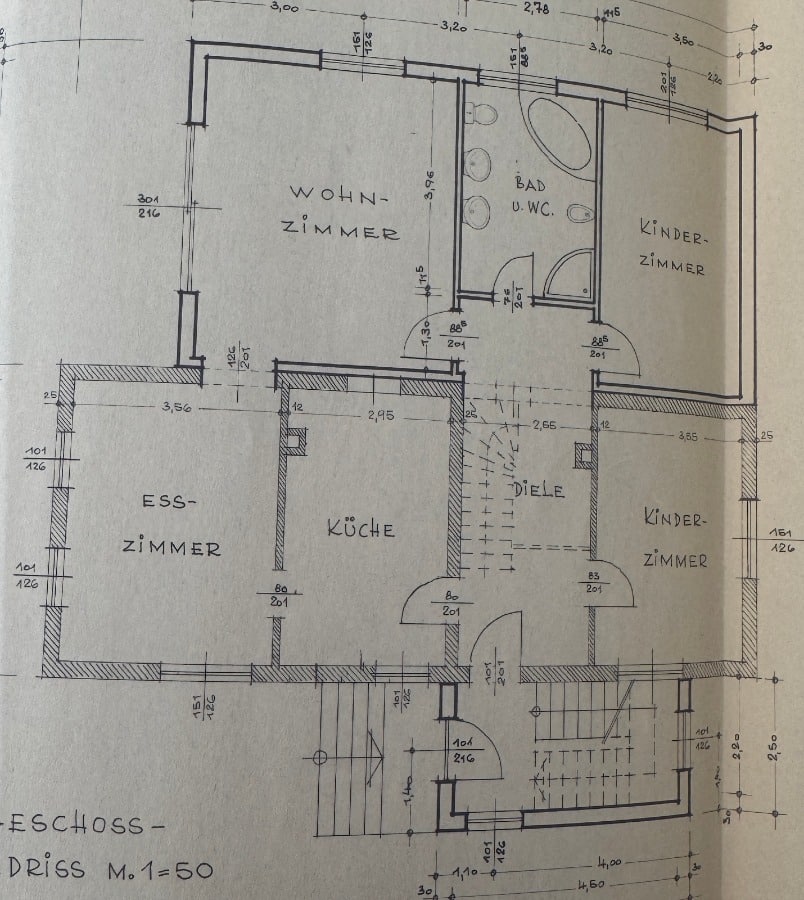 Dieses massiv gebaute Mehrfamilienhaus mit 3 Wohneinheiten ist ursprünglich 1955 als Einfamilienhaus gebaut worden. Der Anbau einschließlich des Treppenhauses ist 1990 erfolgt und laut Nutzungsänderung wurde aus dem Einfamilienhaus ein Zweifamilienhaus. 1992 wurde dann das Dachgeschoss ausgebaut und es ist eine Nutzungsänderung zu einem 3-Familienhaus umgesetzt worden.