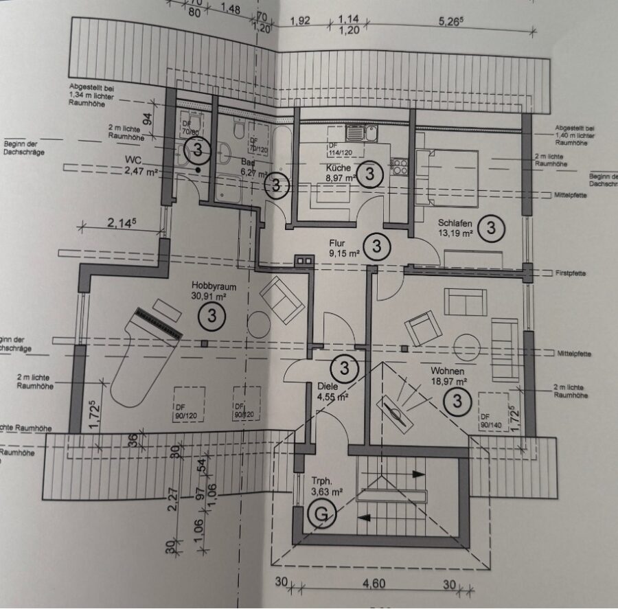 Dachgeschoss-Wohnung mit ca. 95 m² Wohnfläche und 3 Zimmern: